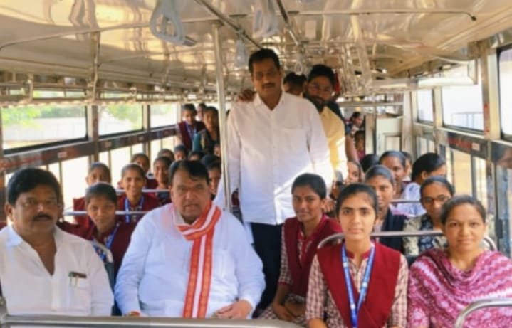 విద్యార్థినిలతో బస్సుప్రయాణం చేసిన పోచారం శ్రీనివాస్ రెడ్డి.
