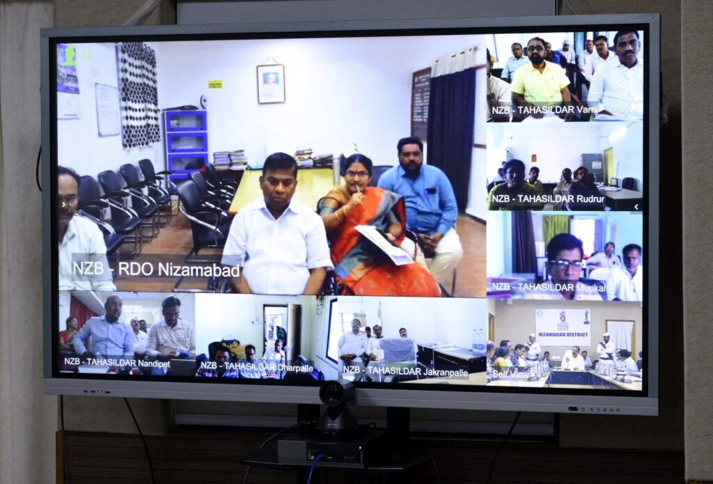 ఉమ్మడి నిజామాబాద్ బ్యూరో జై భారత్ దినపత్రిక అక్టోబర్ 23 : వరి ధాన్యం కొనుగోలు కేంద్రాల పనితీరుపై సమీకృత జిల్లా కార్యాలయాల సముదాయం నుండి వీడియో కాన్ఫరెన్సు ద్వారా కలెక్టర్ టి.వినయ్ కృష్ణారెడ్డి గురువారం సబ్ కలెక్టర్లు, ఆర్డీఓ, తహసిల్దార్లు, ఏ.పీ.ఎంలు, ఏ.ఓలు, ఏ.ఈ.ఓలు, ఐ.కె.పి కేంద్రాల ఇంచార్జ్ లతో సమీక్ష నిర్వహించారు. ఈ సందర్భంగా మోస్రా తహసిల్దార్ కార్యాలయం నుండి వీ.సీలో పాల్గొన్న ప్రభుత్వ సలహాదారు, బాన్సువాడ ఎమ్మెల్యే పోచారం శ్రీనివాస్ రెడ్డి ధాన్యం కొనుగోళ్ళ కోసం జిల్లా యంత్రాంగం ఆధ్వర్యంలో చేసిన విస్తృత ఏర్పాట్ల గురించి సంతృప్తి వ్యక్తం చేస్తూ కలెక్టర్ ను అభినందించారు. తాను ప్రాతినిధ్యం వహిస్తున్న బాన్సువాడ సెగ్మెంట్ పరిధిలోని వర్ని, రుద్రూర్, చందూర్, మోస్రా, కోటగిరి మండలాల పరిధిలో అన్ని ధాన్యం కొనుగోలు కేంద్రాలు సజావుగా కొనసాగుతున్నాయని అన్నారు. అయితే రుద్రూర్ మండలంలో కొన్ని కొనుగోలు కేంద్రాలకు రైస్ మిల్లులతో అనుసంధానం చేయలేదని ప్రస్తావించగా, గురువారం రోజున టాగింగ్ చేశామని కలెక్టర్ తెలిపారు. ఈ సందర్భంగా కలెక్టర్ అధికారులకు పలు సూచనలు చేశారు. కొనుగోలు కేంద్రాల నిర్వహణ సక్రమంగా జరిగేలా తహసిల్దార్లు క్రియాశీలక పాత్ర పోషించాలన్నారు. ఎక్కడైనా ఇబ్బందులు ఏర్పడితే తహసిల్దార్లదే బాధ్యత అని స్పష్టం చేశారు. సంబంధిత శాఖలతో పరస్పర సమన్వయాన్ని పెంపొందించుకుని ధాన్యం విక్రయం విషయంలో రైతులకు ఎలాంటి సమస్యలు తలెత్తకుండా అవసరమైన చర్యలు చేపట్టాలన్నారు. రైతులు ధాన్యం ఆరబెట్టుకునేందుకు వీలుగా అనువైన ఖాళీ స్థలాలను గుర్తించి రైతులకు తెలియజేయాలన్నారు. కొనుగోలు కేంద్రాలకు ధాన్యం తెచ్చిన రైతుల వివరాలను రిజిస్టర్ లో నమోదు చేయాలని అన్నారు. మిల్లులకు ధాన్యం తరలించిన మీదట, వెంటదివెంట ట్రక్ షీట్లు తెప్పించుకుని ఓ.పీ.ఎం.ఎస్ లో వివరాలు నమోదు చేయించాలని అన్నారు. తద్వారా రైతులకు సకాలంలో బిల్లుల చెల్లింపు జరుగుతుందన్నారు. వచ్చే రెండు రోజులలో జిల్లా వ్యాప్తంగా అన్ని నిర్దేశిత ప్రాంతాలలో ధాన్యం కొనుగోలు కేంద్రాలను తెరువాలని ఆదేశించారు. వీడియో కాన్ఫరెన్స్ లో అదనపు కలెక్టర్ కిరణ్ కుమార్, బోధన్ సబ్ కలెక్టర్ వికాస్ మహతో, ఆర్డీఓ రాజేంద్రకుమార్, డీ.ఆర్.డీ.ఓ సాయాగౌడ్, డీ.ఎస్.ఓ అరవింద్ రెడ్డి, సివిల్ సప్లైస్ డీ.ఎం శ్రీకాంత్ రెడ్డి, మార్కెటింగ్ ఏ.డీ గంగుబాయి, డీ.సీ.ఓ శ్రీనివాస్, జిల్లా వ్యవసాయ అధికారి గోవిందు తదితరులు పాల్గొన్నారు.