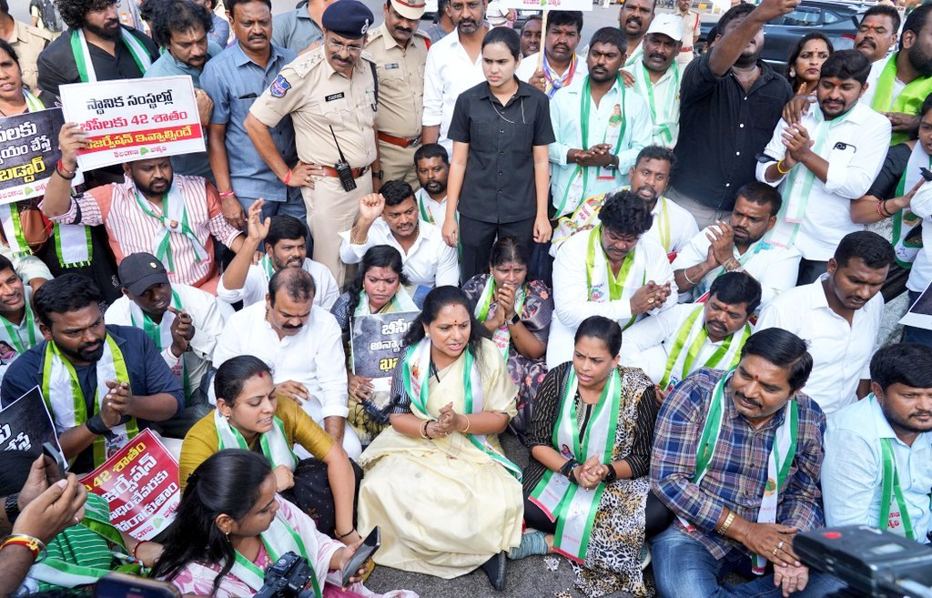 బీసీల బంద్ కు మద్దతుగా పాల్గొన్న తెలంగాణ జాగృతి అధ్యక్షురాలు కల్వకుంట్ల కవిత.
